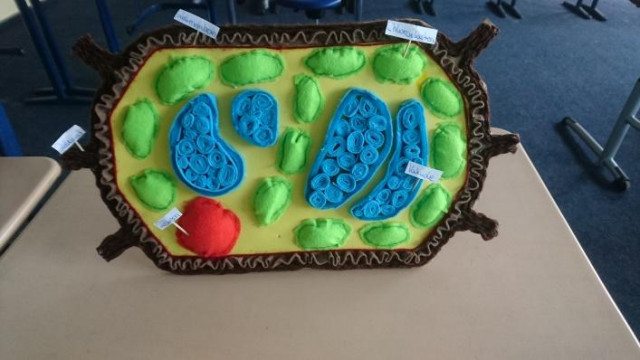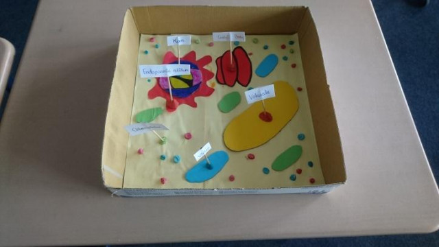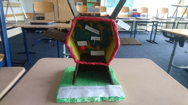 Im Rahmen des Lehrstoffes „Die Zelle“ haben die Schüler/innen der Klasse 8a unter der Leitung der Klassenlehrerin Frau Lange die Struktur pflanzlicher Zellen nachgebaut. Dafür hatten sie insgesamt acht Schulstunden Zeit und konnten ihrer Fantasie bei der Gestaltung freien Lauf lassen. Abgesehen von den vorhandenen Materialien, wie Pappen, Strohhalme, Styropor und Zahnstochern, konnten sie auch Material von zu Hause mitbringen und verwerten.