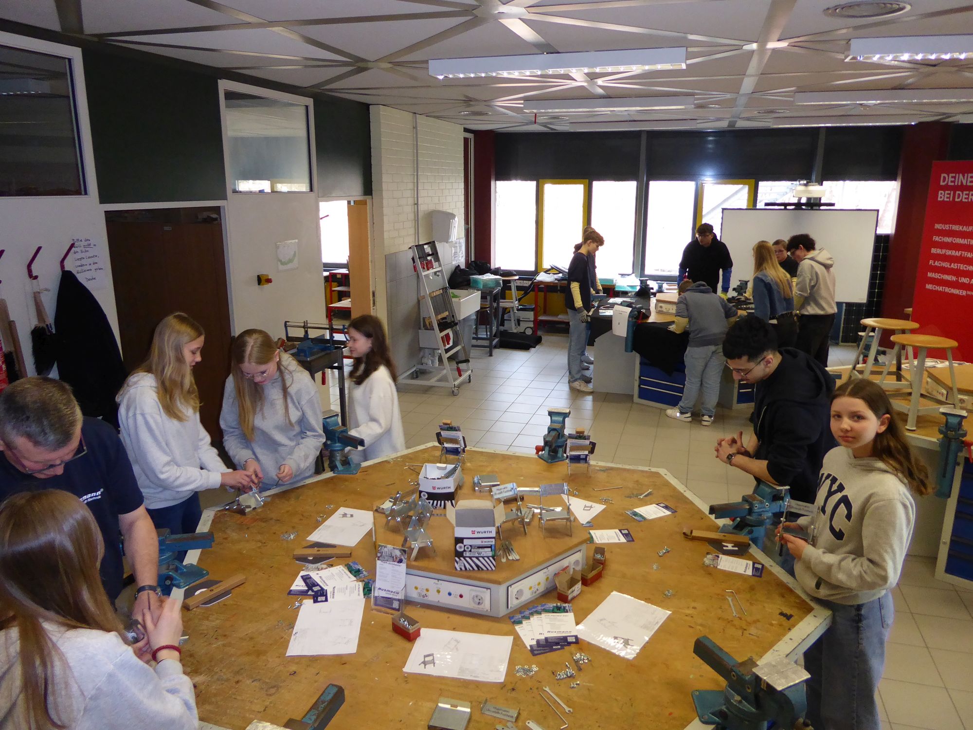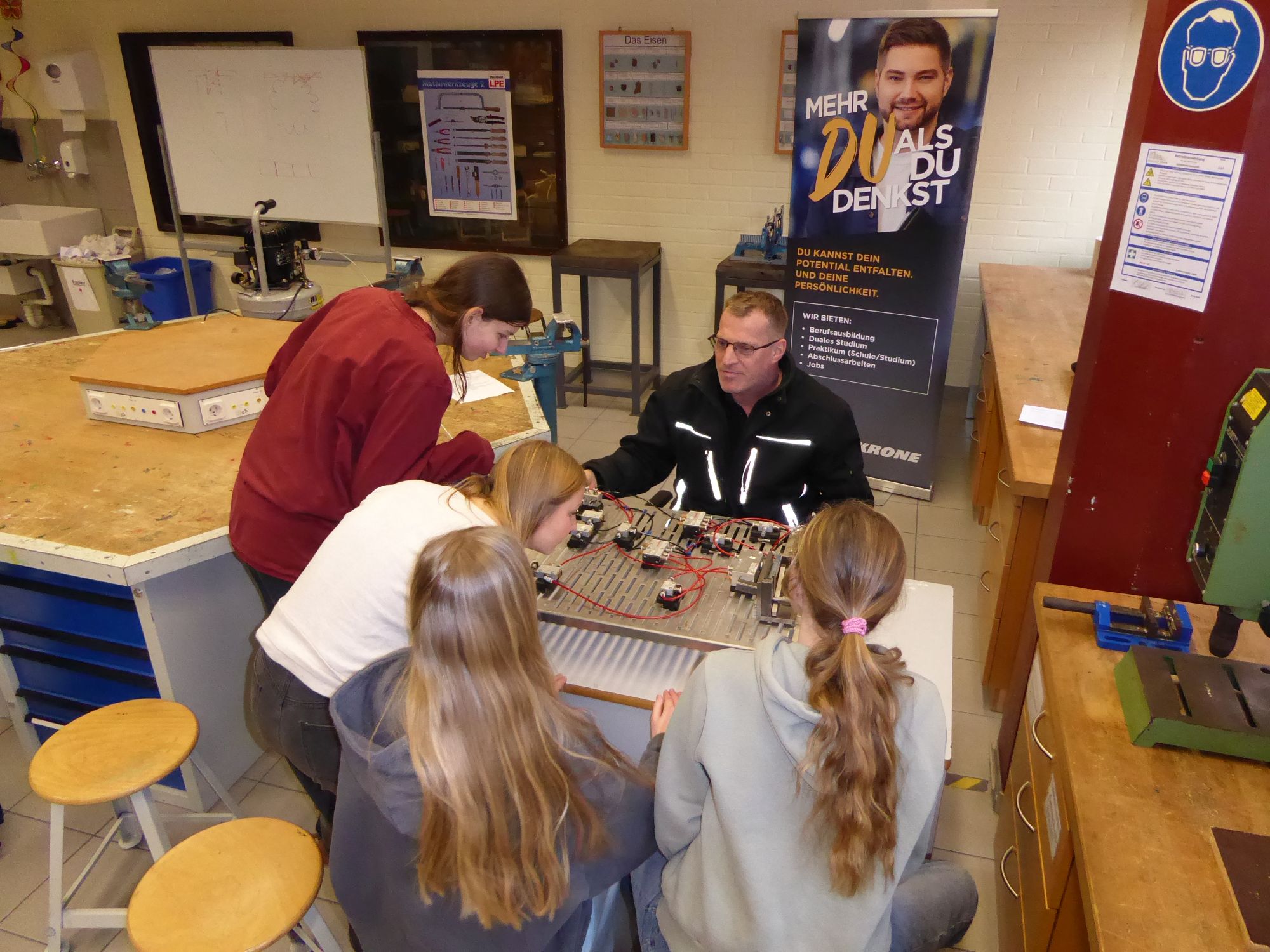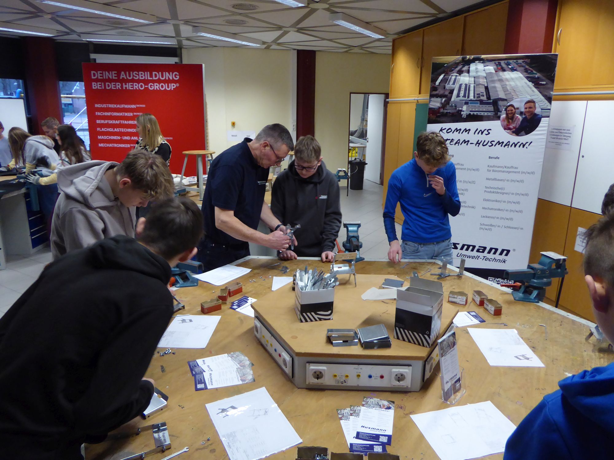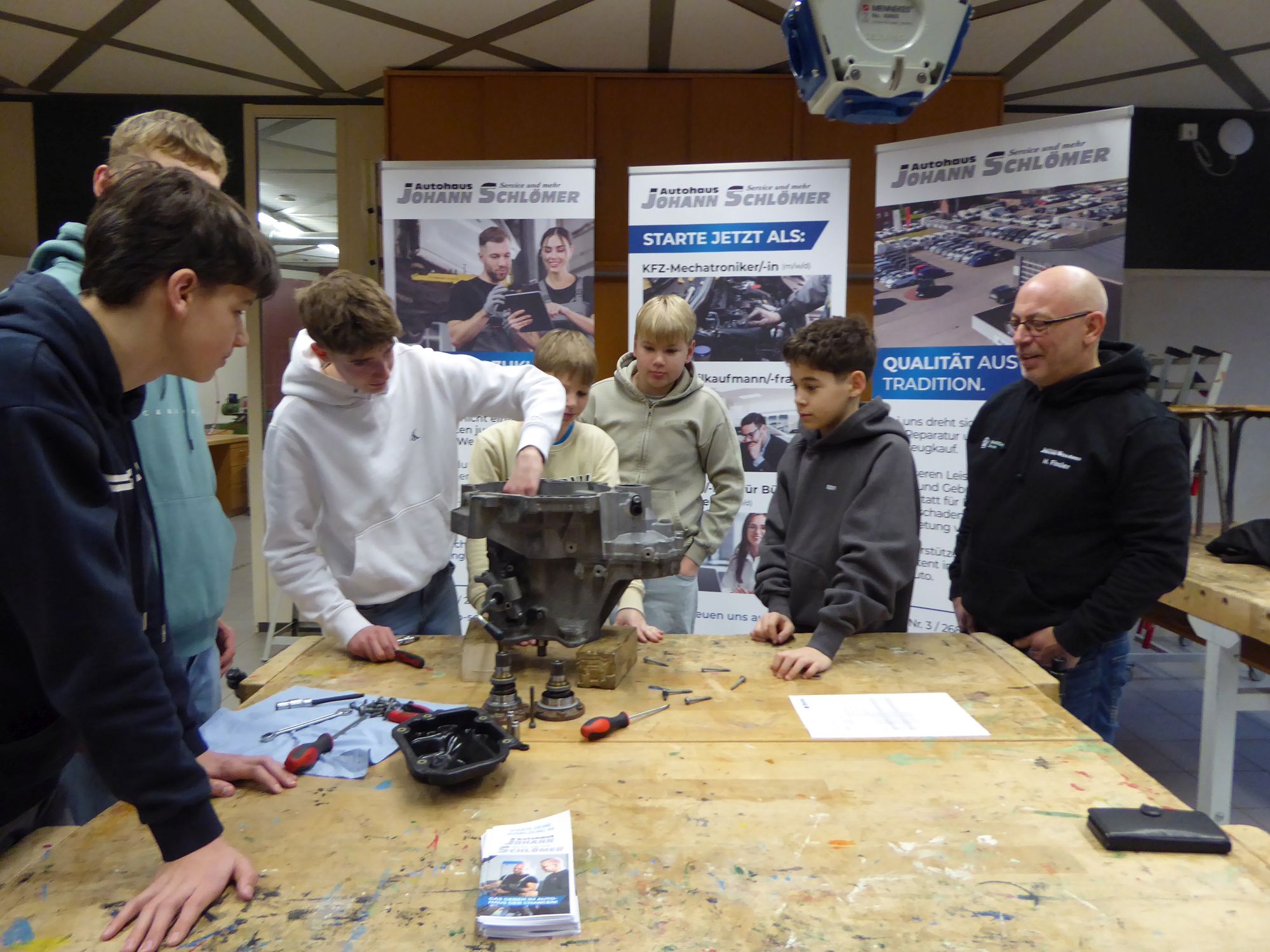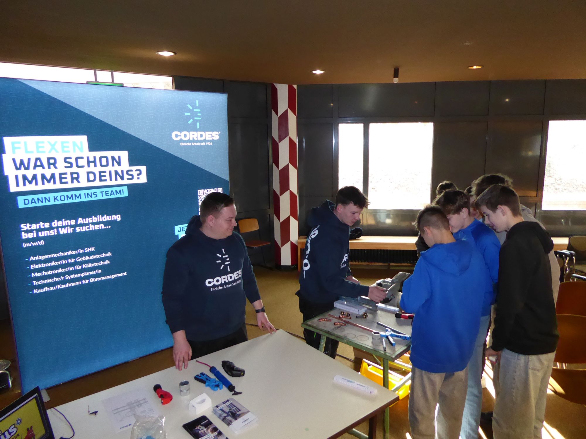 Die teilnehmenden Unternehmen präsentierten ihre Ausbildungsberufe direkt in den Räumen unserer Schule. In Kleingruppen durchliefen die Schülerinnen und Schüler nacheinander verschiedene Berufe-Stationen. Dabei erhielten sie nicht nur umfassende Informationen, sondern konnten vor allem auch selbst aktiv werden und ihr praktisches Geschick erproben.