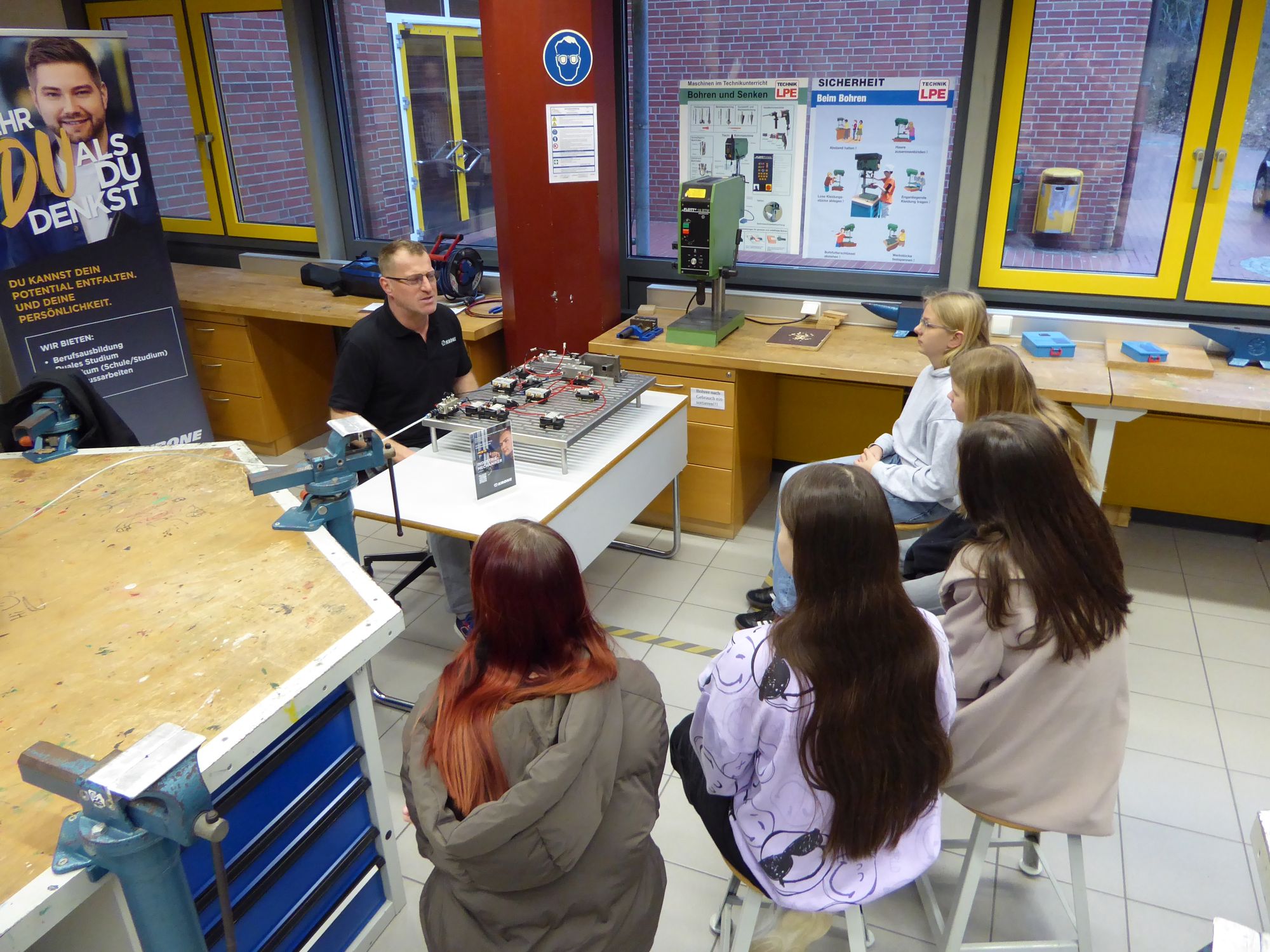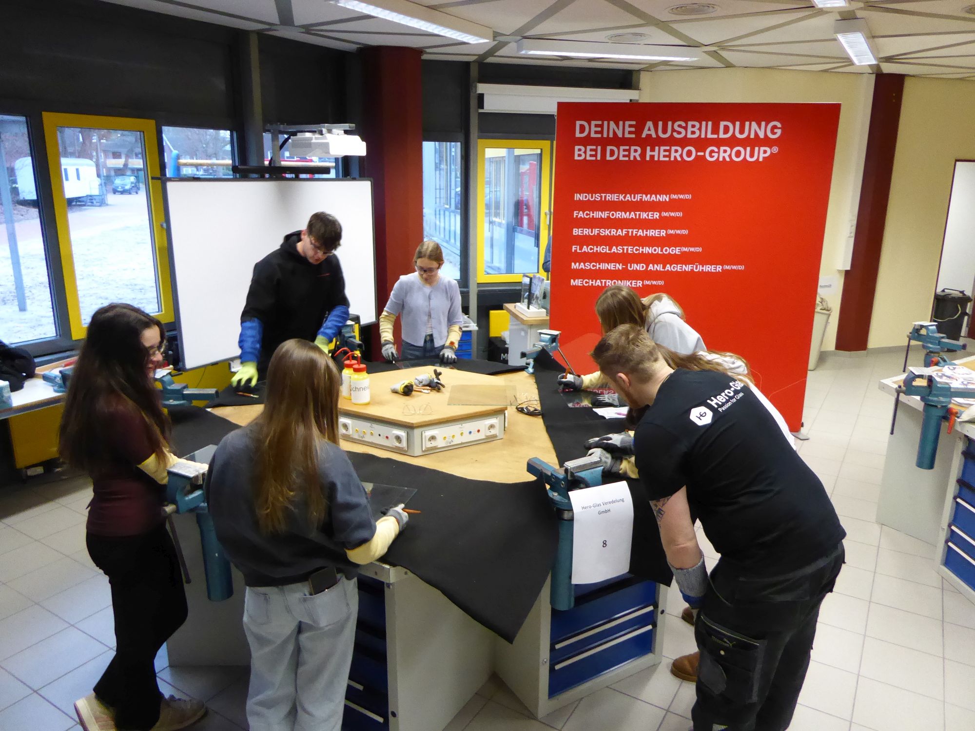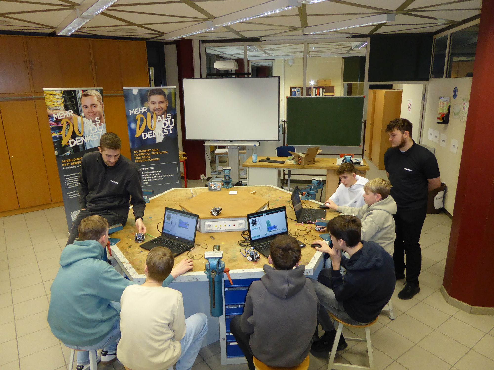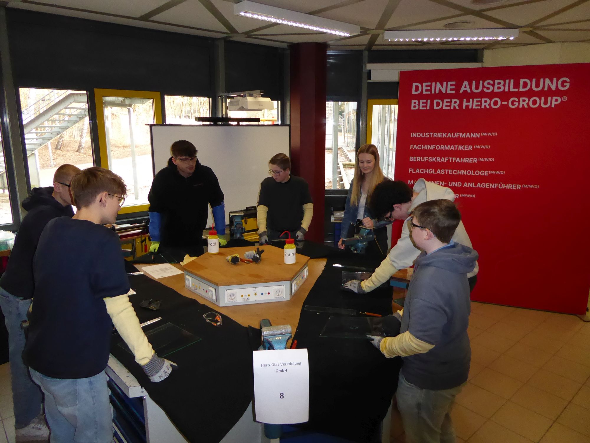 Die teilnehmenden Unternehmen präsentierten ihre Ausbildungsberufe direkt in den Räumen unserer Schule. In Kleingruppen durchliefen die Schülerinnen und Schüler nacheinander verschiedene Berufe-Stationen. Dabei erhielten sie nicht nur umfassende Informationen, sondern konnten vor allem auch selbst aktiv werden und ihr praktisches Geschick erproben.