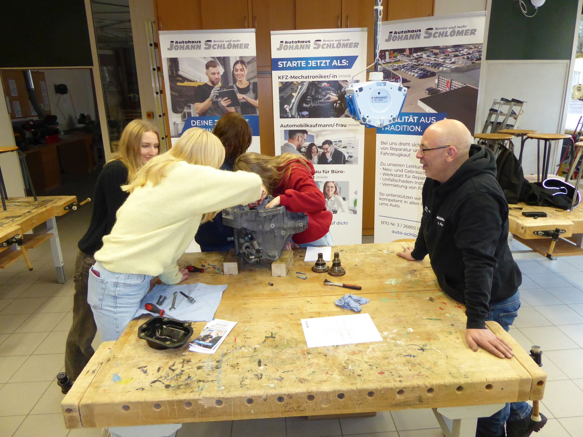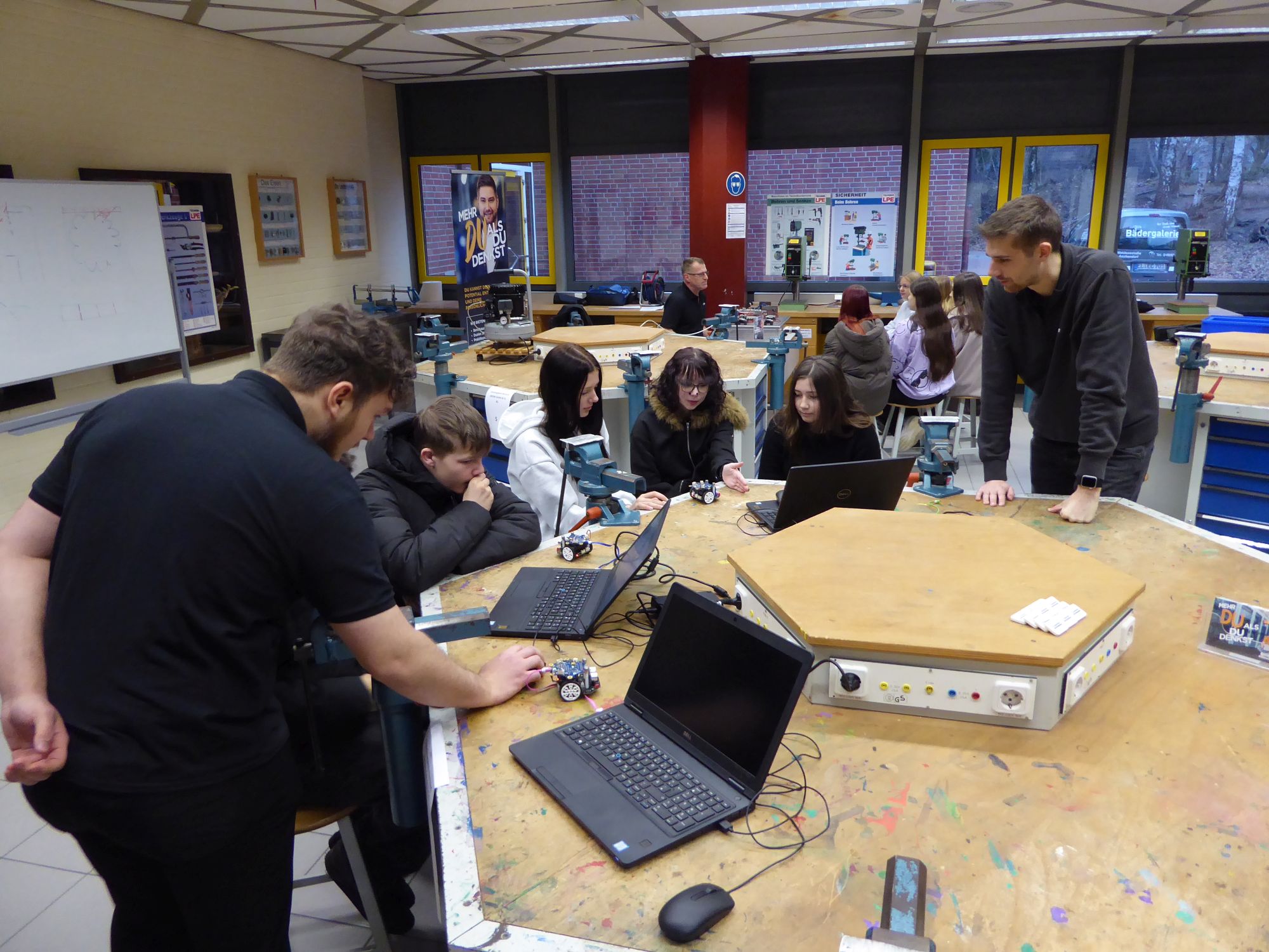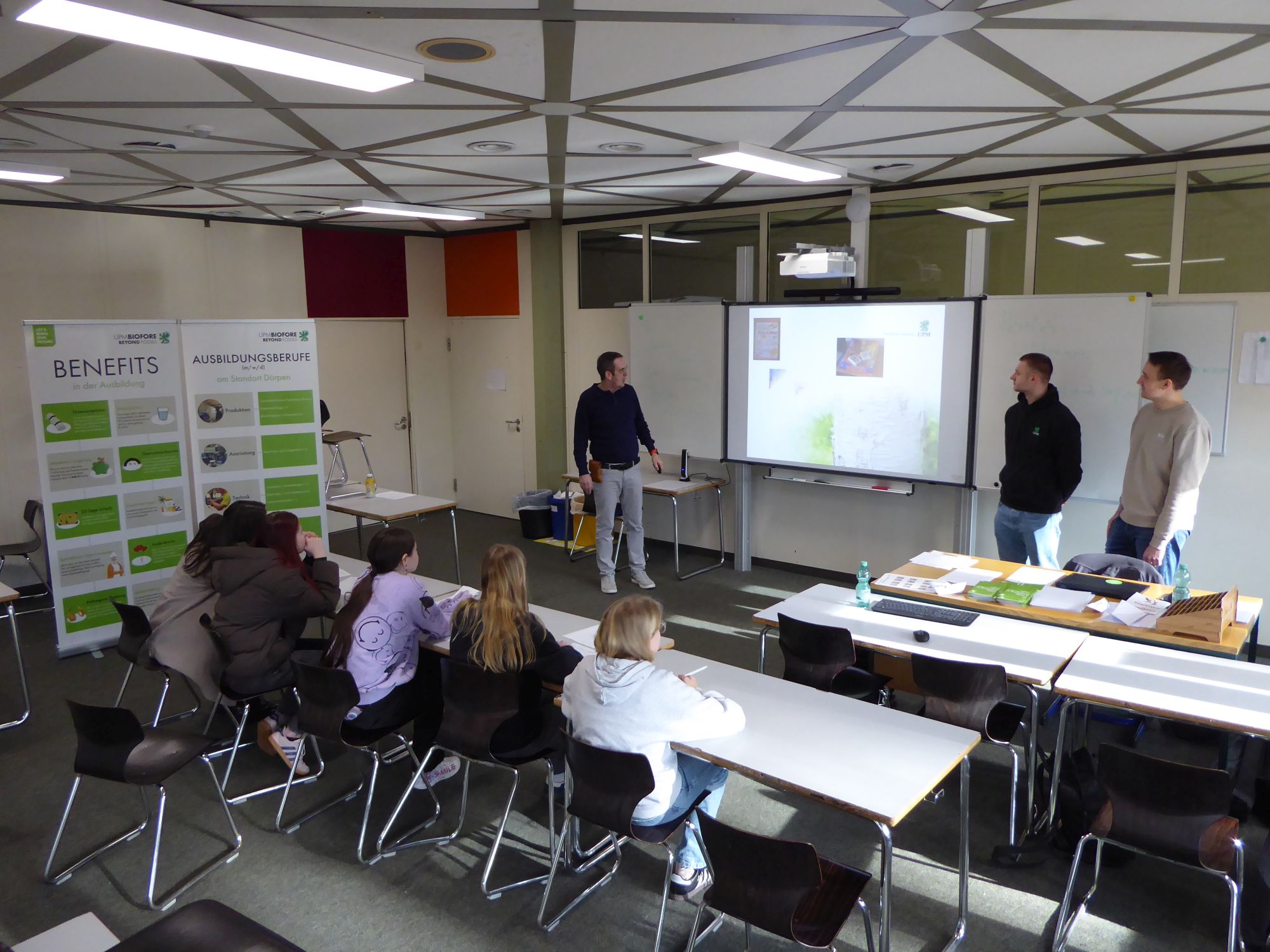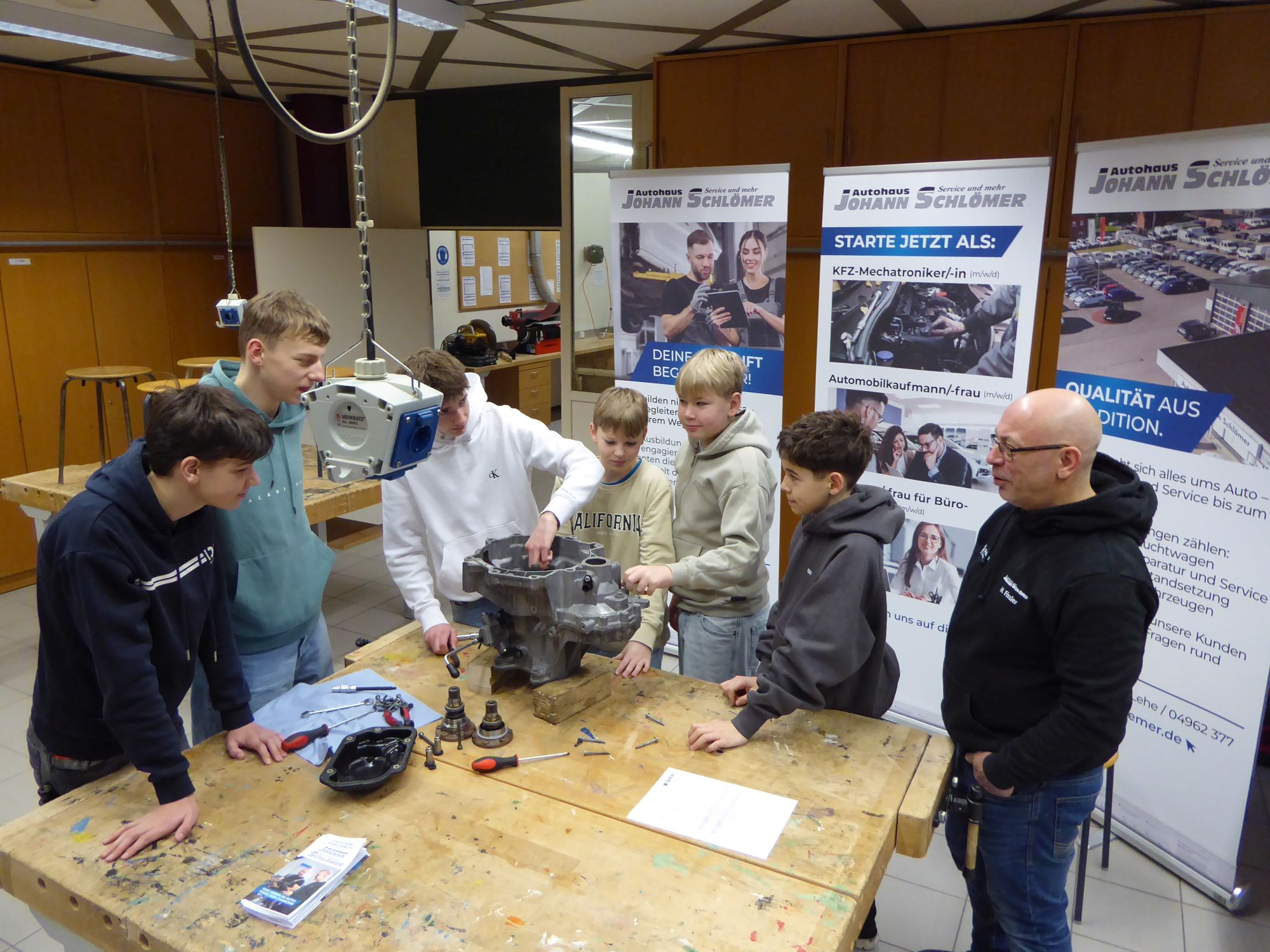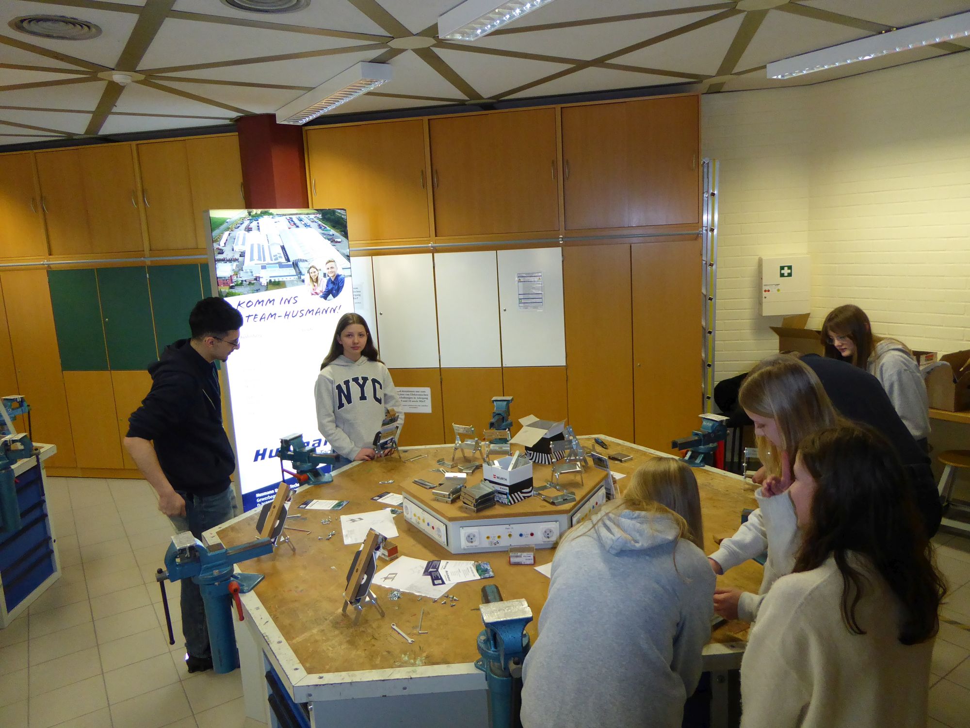 Die teilnehmenden Unternehmen präsentierten ihre Ausbildungsberufe direkt in den Räumen unserer Schule. In Kleingruppen durchliefen die Schülerinnen und Schüler nacheinander verschiedene Berufe-Stationen. Dabei erhielten sie nicht nur umfassende Informationen, sondern konnten vor allem auch selbst aktiv werden und ihr praktisches Geschick erproben.